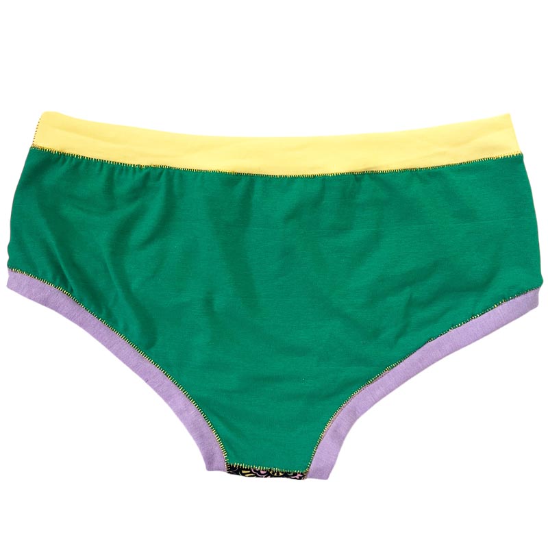 Cette culotte aux assemblages de matières et couleurs (40% coton, 30% élasthane et 30% viscose) ne présente pas d’élastique, aussi bien au niveau de la taille qu’au niveau des cuisses. Agréable au toucher et confortable à porter.
