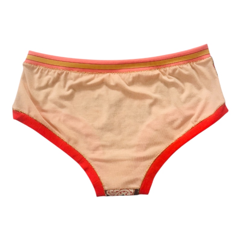 Cette culotte aux assemblages de matières et couleurs (40% coton, 30% élasthane et 30% viscose) ne présente pas d’élastique, aussi bien au niveau de la taille qu’au niveau des cuisses. Agréable au toucher et confortable à porter.