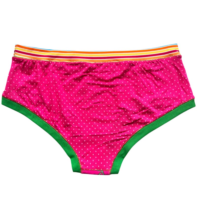 Cette culotte aux assemblages de matières et couleurs (40% coton, 30% élasthane et 30% viscose) ne présente pas d’élastique, aussi bien au niveau de la taille qu’au niveau des cuisses. Agréable au toucher et confortable à porter.