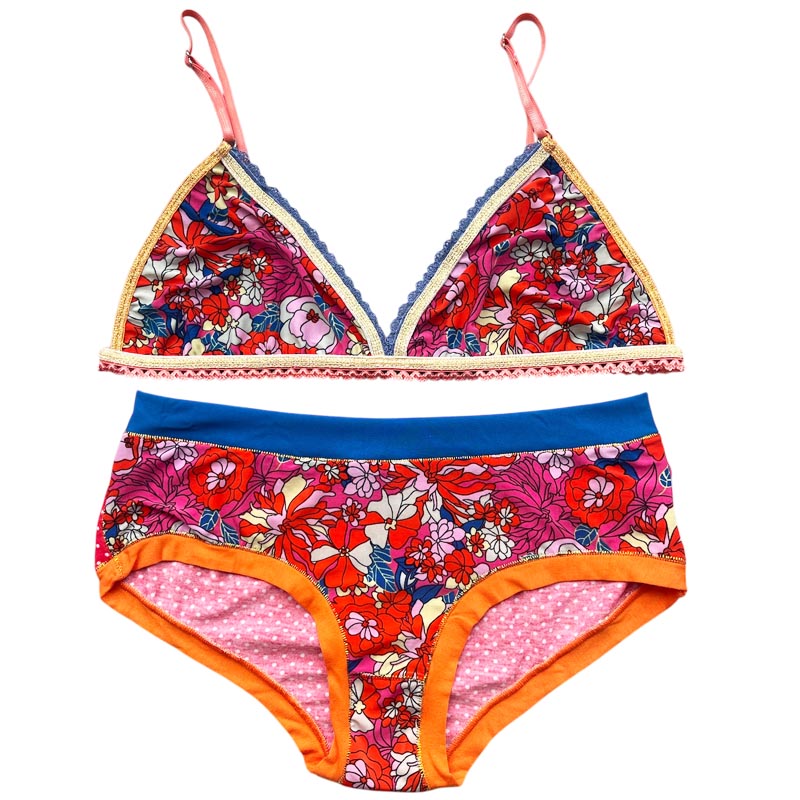 Ensemble aux assemblages de matières et couleurs (40% coton, 30% élasthane et 30% viscose) dont la culotte ne présente pas d’élastique, aussi bien au niveau de la taille qu’au niveau des cuisses et le soutien gorge triangle s’adapte à chaque poitrine grâce à l’élasticité du tissu. Agréable au toucher et confortable à porter.